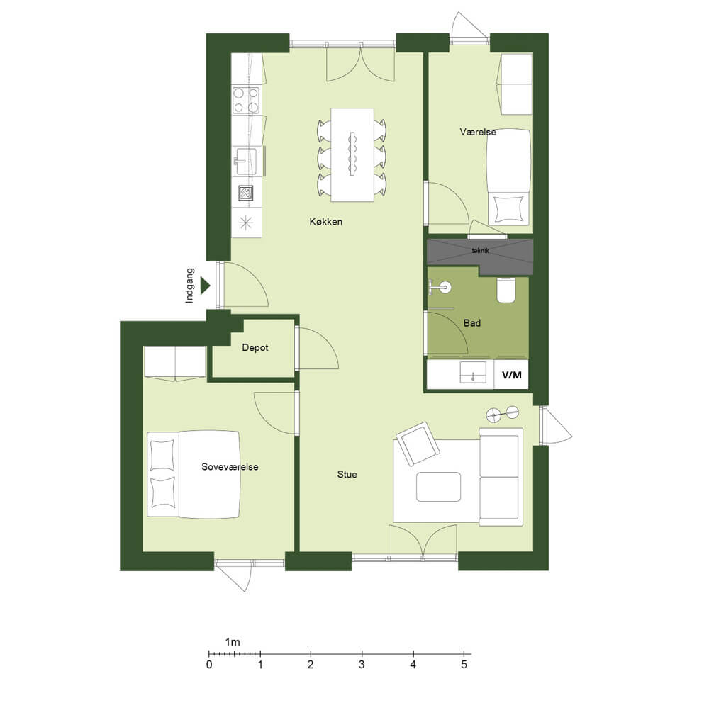 Eksempel på plantegning af en bolig